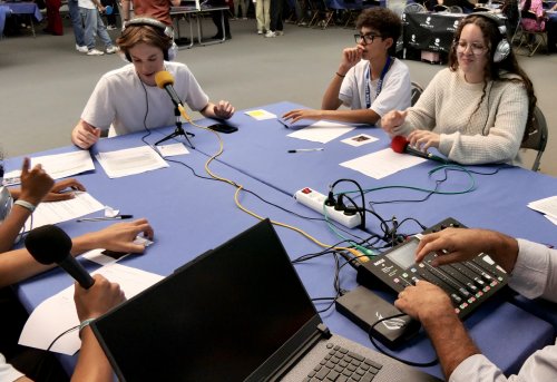 La délégation régionale académique au numérique éducatif (Drane) d’Ile de France, partenaire de ce bel évènement, était présente ce jour là pour animer, entre autre, un atelier de Webradio. Des élèves de plusieurs collèges et lycées se sont succédés pour réaliser une courte émission sur le thème de la pratique du jeu vidéo. Si pour certains ce support pédagogique était une découverte ils ont endossé avec beaucoup de plaisir les rôles de « présentateur » ou de « journaliste » pour réaliser à chaque fois deux interviews :