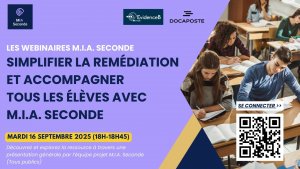 - Mardi 16 septembre 2025, 18h - 18h45 : Présentation générale de la ressource M.I.A. Seconde (tous publics).