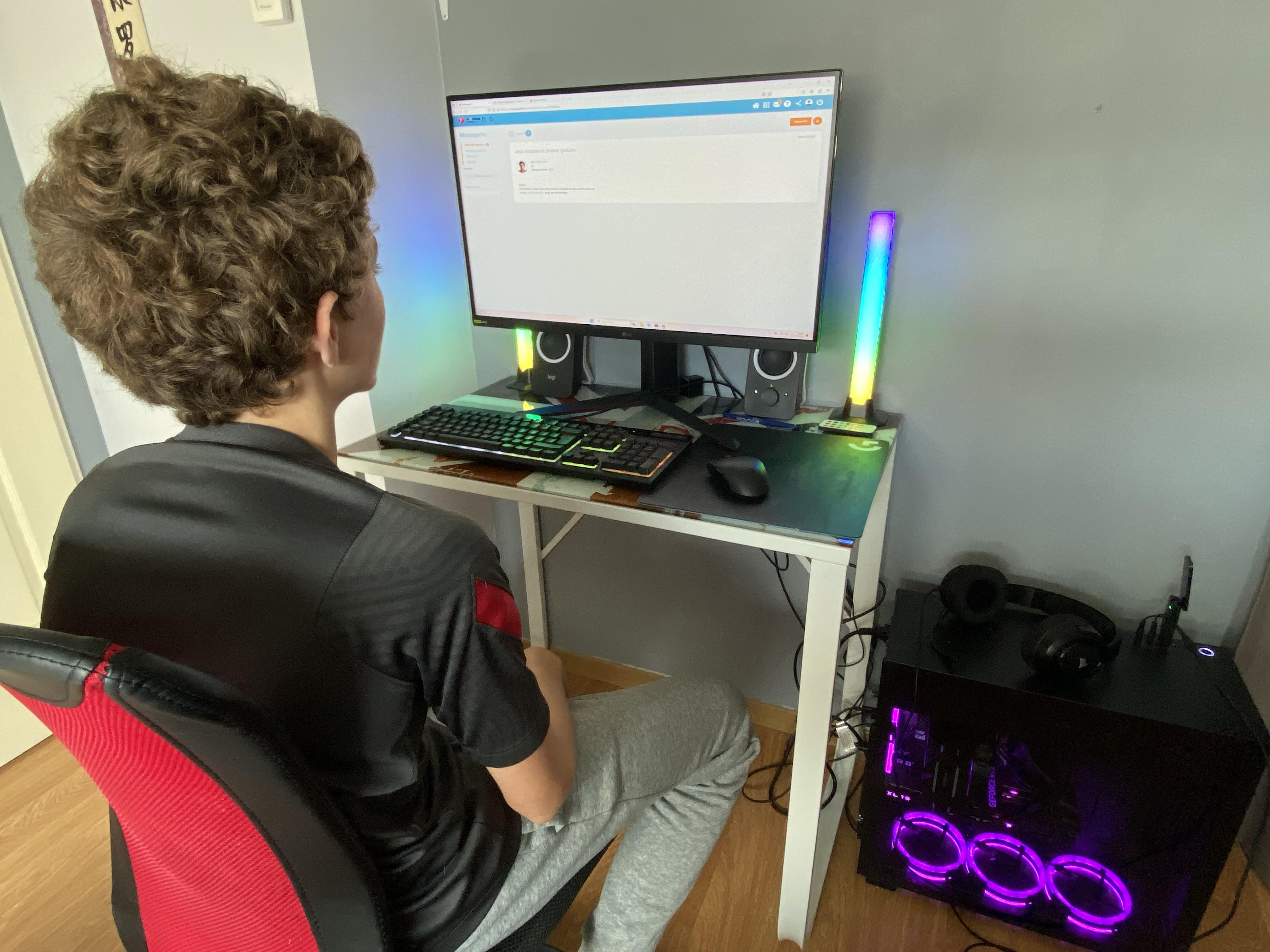 Un élève d’un collège des Yvelines découvrant le message de phishing de l’opération CACTUS.